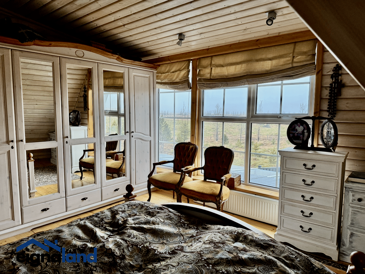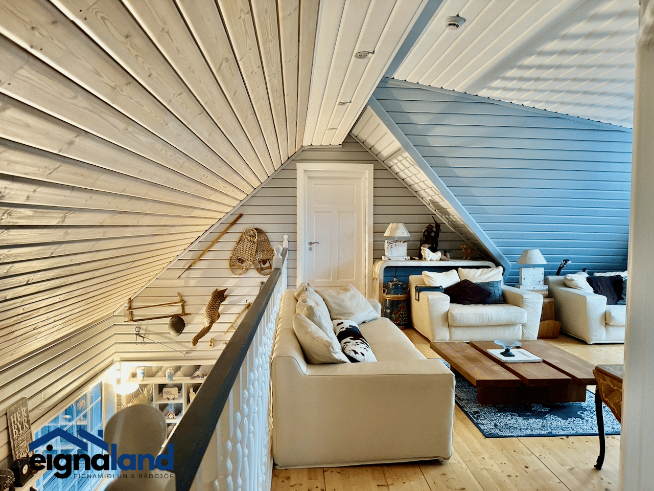 Á efri hæð er að finna 3 herbergi auk opins rýmis með ægifögru útsýni.