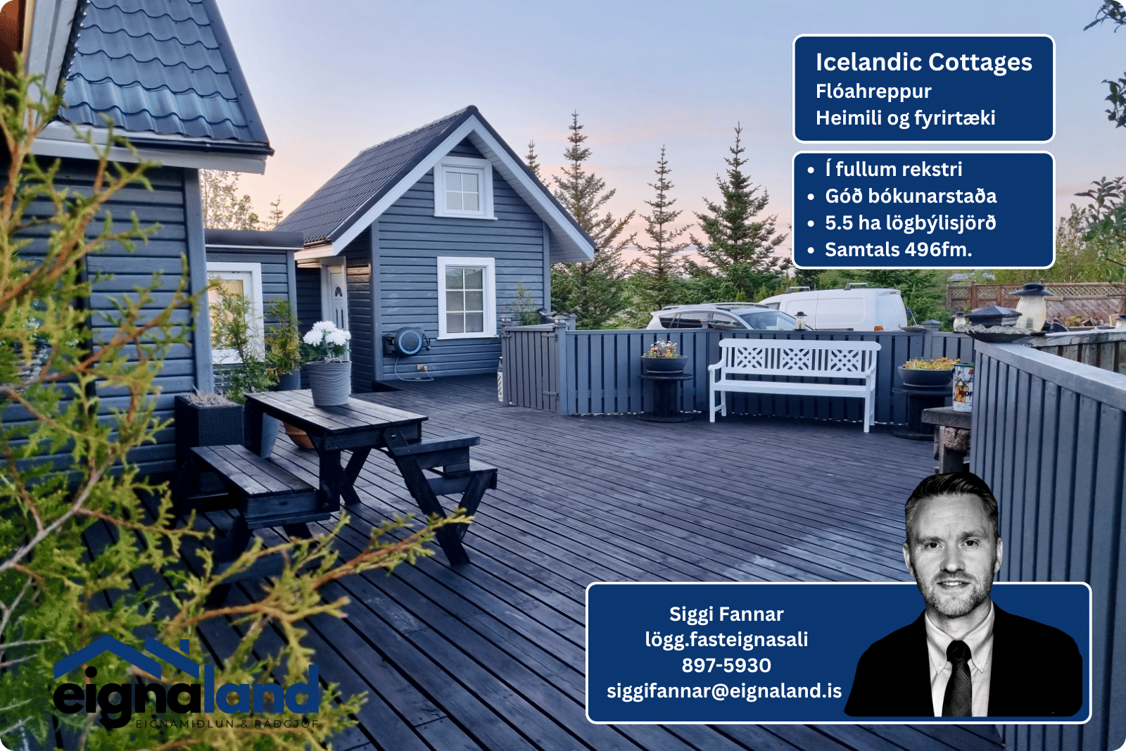 Nánari upplýsingar veitir Sigurður Fannar lögg. fasteignasali í síma 897-5930 eða siggifannar@eignaland.is