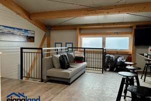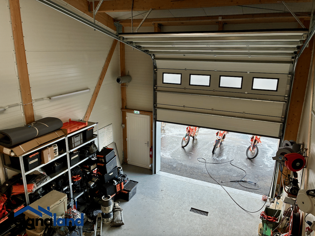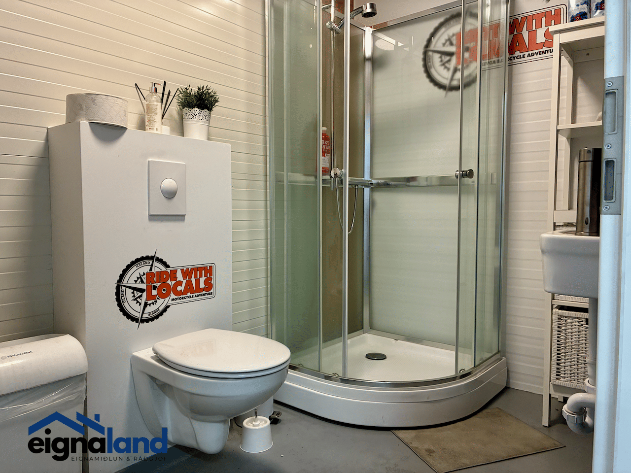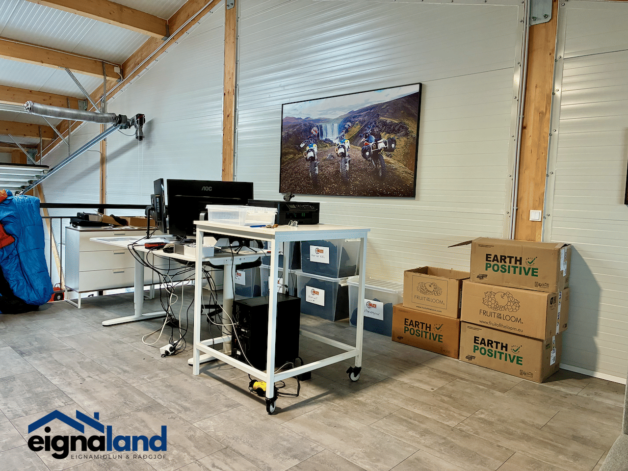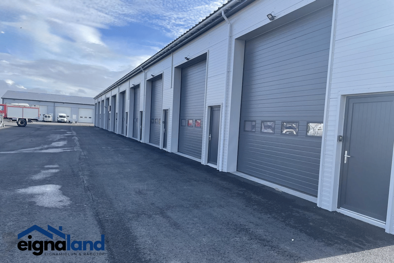 Húsið er í dag innréttað sem vinnusalur, lager/geymsla, salernis,- kaffiaðstaða - allt staðsett á grunnhæðinni. Á 2.hæðinni eða milliloftinu er kaffistofa, fundarrými og skrifstofa. Innkeyrsluhurð er í aðalrými frá Héðinshurðum, c.a. 4,3m á hæð og 4m á breidd, þar er einnig gönguhurð. Í húsinu er 3ja fasa rafmagn. Malbikað bílaplan er við húsið og séreignaflötur framan við bilið. Límtréshús, klætt með yleiningum, byggt 2023.